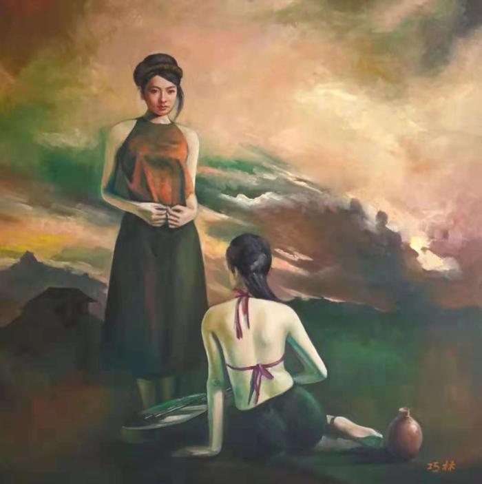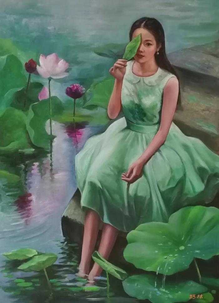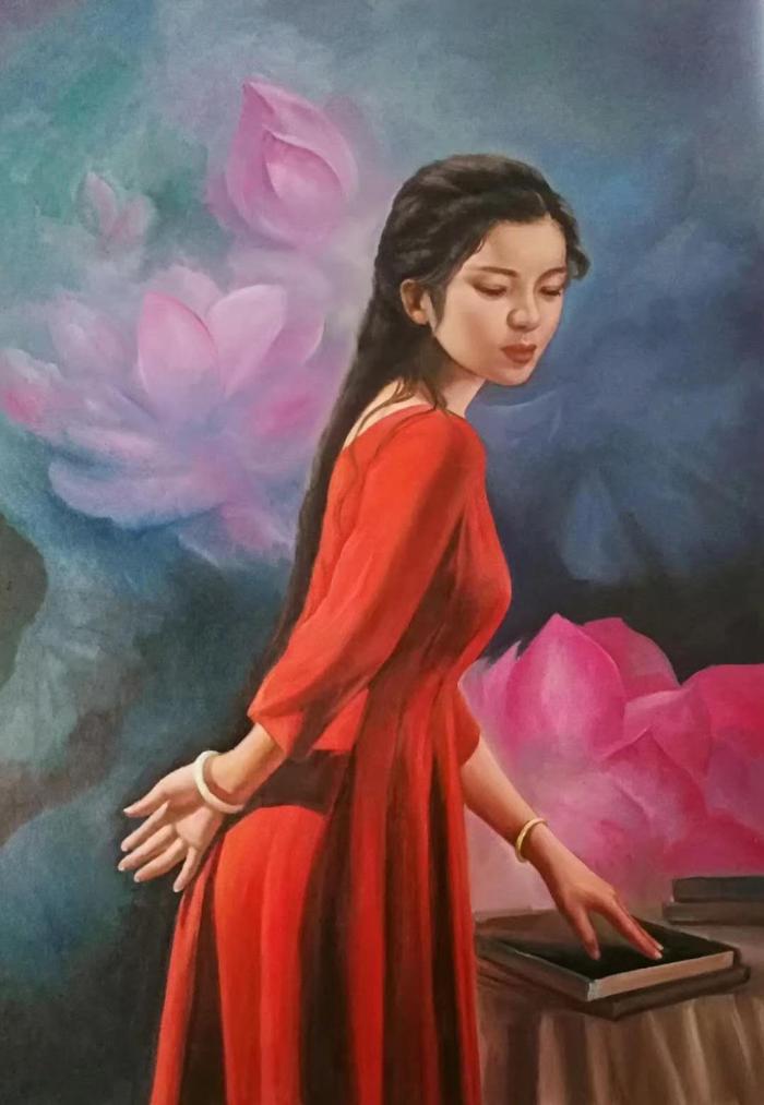 他的油画有超能般的写实水准,是经过古典主义历练而得到的娴熟技法,处理光影惟妙神奇,铺陈油彩纤尘不染,光与色的流丽感,如同被水洗过一般养眼滋润。用这种极致专业非常细腻的专业技法,创作人物作品,便可以生动传神!他油画里的女子,既有平凡的朴实感,也有仙域般的唯美感。