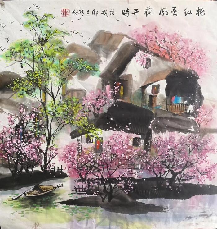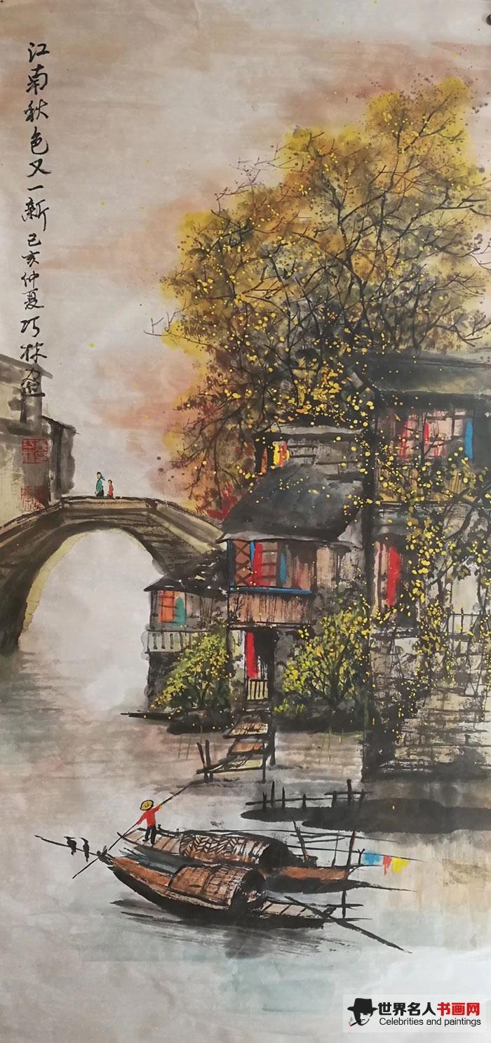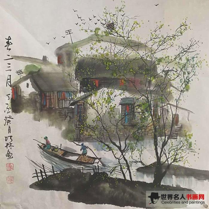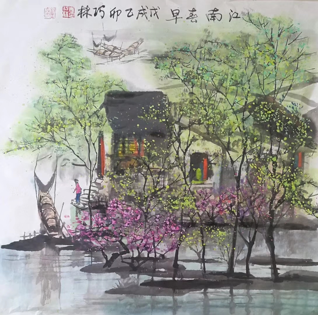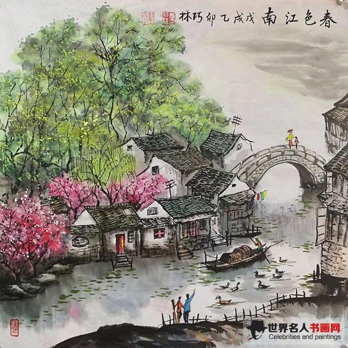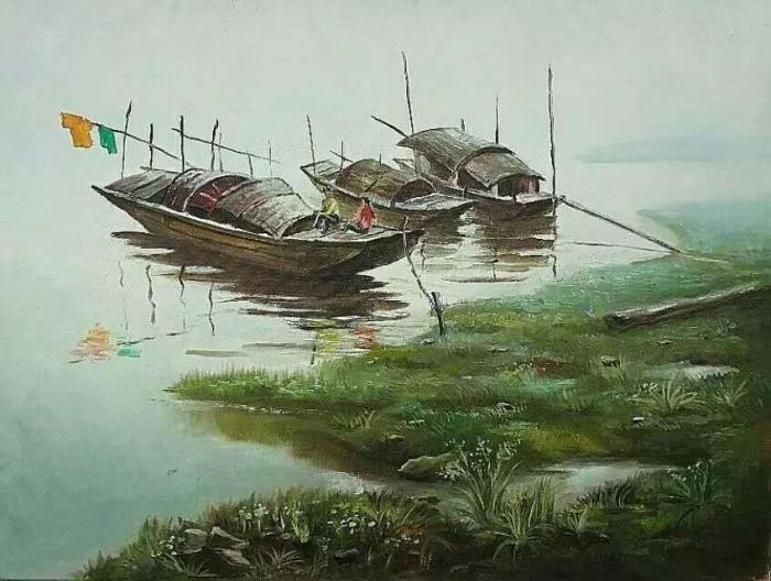袁巧林有非常深厚的传统文化修养,对中国美术所表达的含蓄意象深觉深悟,用这种觉悟去作中国山水作品,极有一天清淑气,万里碧榆风的气韵生动。江南有水乡,诗韵画中泊。他借助虚实相应的审题原理,把江南秀美画得萧萧意远,一弯清水绕村流,小船随风落天边!色彩与水墨的铺陈极致干净,写意春风秋水,可以扑面盈怀。与这样的山水经遇,必然生发出满纸青翠如可扫,参差绿到天边远的审美感受。青绿浅绛,随类赋彩,应物象形,唯妙唯肖。他的诗意江南,正是东方审美的代言,就算是画油画风景,也带入了这种诗情画意,美得让任何人都会觉意心醉,能不惊艳世界?